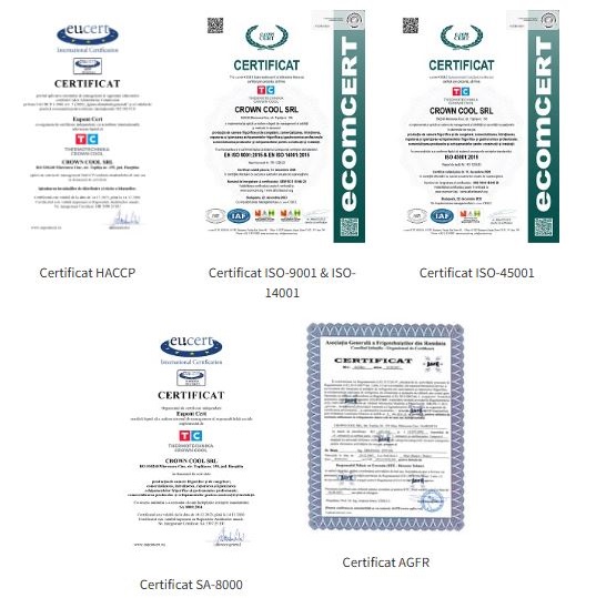 Service: Echipa noastră de service, pregătită conform standardelor europene și cu experiență acumulată de-a lungul anilor, se perfecționează continuu pentru a ține pasul cu noile soluții tehnice. Rețeaua noastră de service acoperă eficient întreg teritoriul României, fiind prezentă în toate județele țării. Pentru a ne adapta cerințelor pieței, suntem certificați de Asociația Generală a Frigotehniștilor din România (AFGR) și activăm în conformitate cu sistemele integrate de management: ISO 9001 (calitate), HACCP, ISO 14001 (mediu), ISO 45001 (sănătate și securitate ocupațională) și SA 8000 (responsabilitate socială).